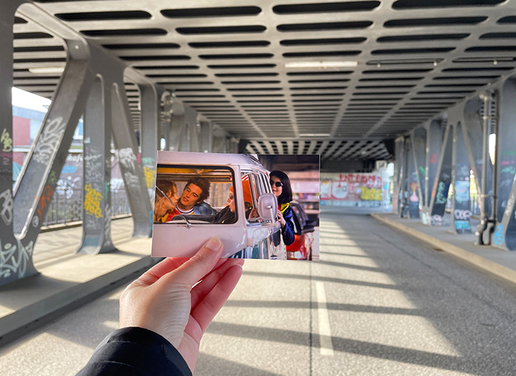 Einen weiteren Auftritt der Bandits sehen wir in einer früheren Szene des Filmes auf der Oberhafenbrücke. Die Bandits biegen mit dem Bus auf die Brücke ein und werden schließlich von den Leuten um sie herum erkannt und gefeiert.